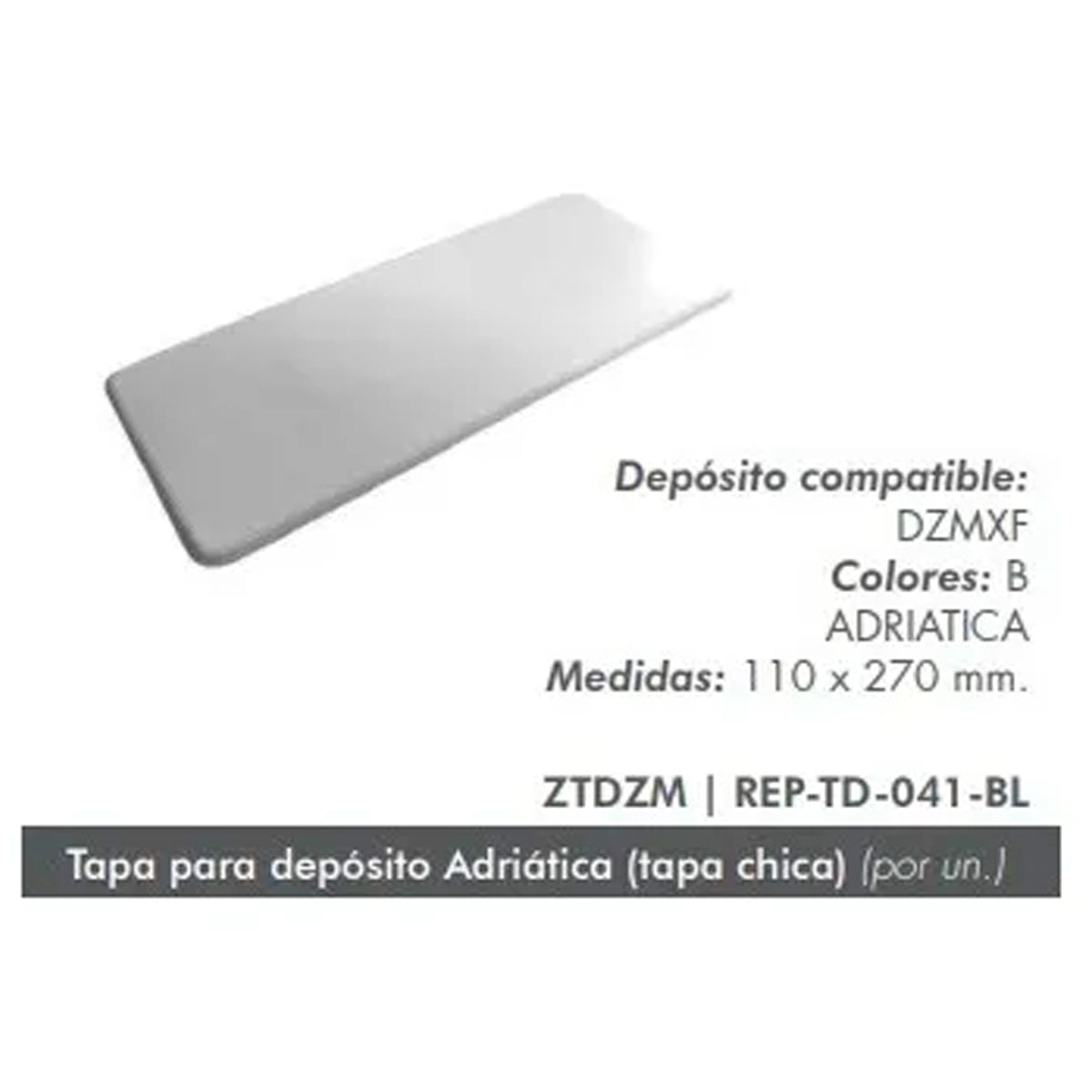 ¡Últimas existencias! Forma del producto FERRUM TAPA DEP ADRIATICA ZTDZM REP-TD-041-BL $24.815,06Con IVA MEDIDAS 110 X 270 MM material: lozacolor: blanco Recogida gratuita en nuestra(s) tienda(s) SKU: FEZTDZM 3 productos en stock Show extra info for delivery time Añadir al carrito Este artículo es una compra recurrente o diferida. Al continuar, acepto la política de cancelación y autorizo a realizar cargos en mi forma de pago según los precios, la frecuencia y las fechas indicadas en esta página hasta que se prepare mi pedido o yo lo cancele, si está permitido. Este producto cuenta con garantía de fábricaTodos los repuestos disponibles Reseñas 0 reseñas Comparte con tus amigos Comparte WhatsApp Deel X Póngale un alfiler. Messenger Correo electrónico ¿Necesitas ayuda con tu talla?