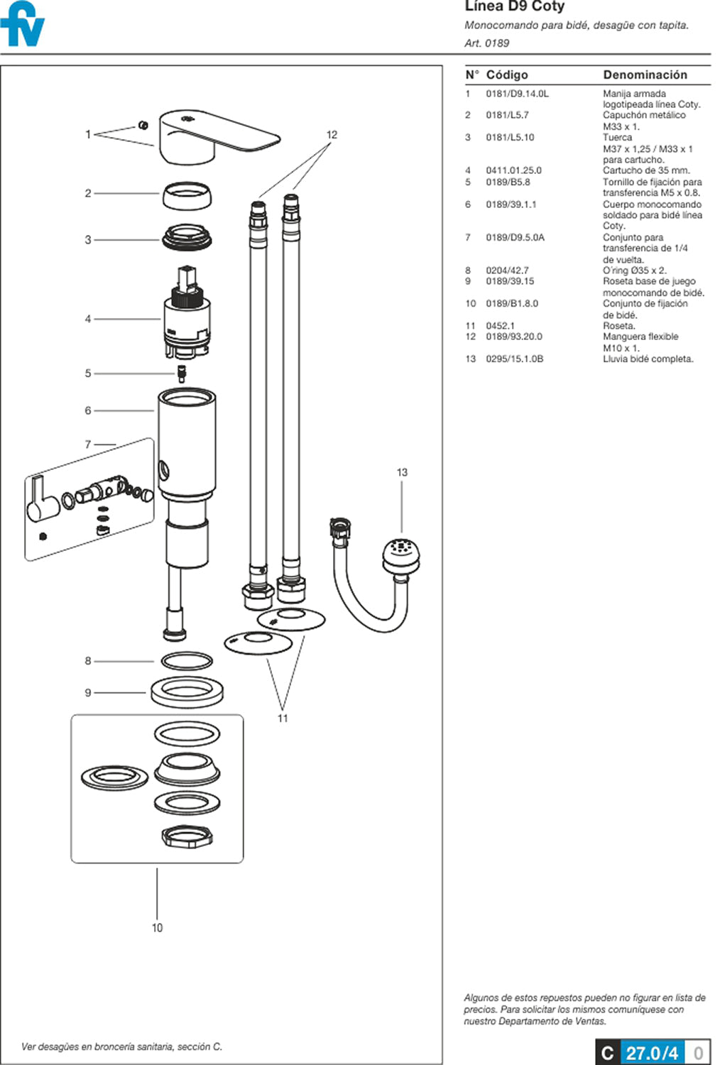 Forma del producto FV COTY MONO BIDE 0189/D9-CR $165.019,10Con IVA Juego monocomando para bidé. Desagüe con tapita.- Color: Cromo- Tipo: Monocomando- Apto: Apto para calefón y/o termotanque- Linea: D9 Coty-... Recogida gratuita en nuestra(s) tienda(s) SKU: FV189D9 6 productos en stock Show extra info for delivery time Añadir al carrito Este artículo es una compra recurrente o diferida. Al continuar, acepto la política de cancelación y autorizo a realizar cargos en mi forma de pago según los precios, la frecuencia y las fechas indicadas en esta página hasta que se prepare mi pedido o yo lo cancele, si está permitido. Este producto cuenta con garantía de fábricaTodos los repuestos disponibles Reseñas 0 reseñas Comparte con tus amigos Comparte WhatsApp Deel X Póngale un alfiler. Messenger Correo electrónico ¿Necesitas ayuda con tu talla?