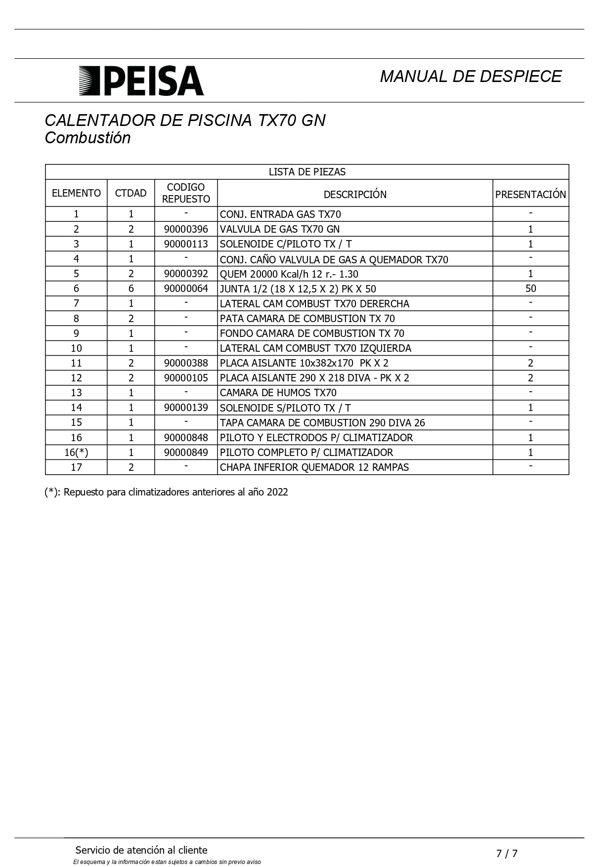 ¡Últimas existencias! Forma del producto PEISA CALENTADOR DE PISCINAS TX70 GN 10000098 $6.653.197,56Con IVA Ideal para espejos de agua de 70m2.Fabricado en chapa de acero galvanizada protegida por pintura poliéster polimerizada en horno. garantiza... Recogida gratuita en nuestra(s) tienda(s) SKU: PECALPISTX70 4 productos en stock Show extra info for delivery time Añadir al carrito Este artículo es una compra recurrente o diferida. Al continuar, acepto la política de cancelación y autorizo a realizar cargos en mi forma de pago según los precios, la frecuencia y las fechas indicadas en esta página hasta que se prepare mi pedido o yo lo cancele, si está permitido. ¿Enviado hoy? Pide dentro: Feb 05, 2026 17:00:00 -0300 Este producto cuenta con garantía de fábricaTodos los repuestos disponibles Reseñas 0 reseñas Comparte con tus amigos Comparte WhatsApp Deel X Póngale un alfiler. Messenger Correo electrónico ¿Necesitas ayuda con tu talla?